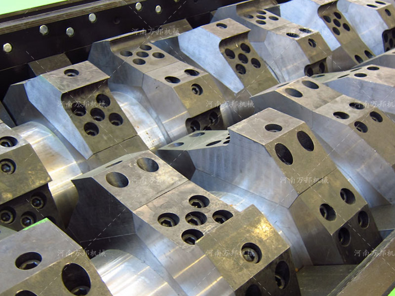 撕碎機刀片分為定刀和動刀,定刀通過內(nèi)部六邊形卡位孔固定于撕碎機主軸上對物料進行破碎加工。