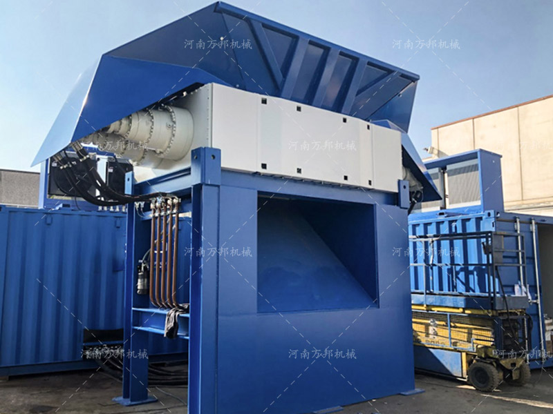 河南萬邦機械液壓金屬撕碎機又叫做雙軸破碎機,雙軸金屬破碎機,該機為河南萬邦機械依據(jù)市場需求而研究開發(fā)的一種新型剪切式破碎機,該機主要作為金屬粗碎設(shè)備用于對報廢汽車外殼、彩鋼瓦、油漆桶等大型廢舊空體物料進行破碎加工,所加工物料根據(jù)厚度及材質(zhì)種類不同呈顆粒狀或片狀結(jié)構(gòu),該機相對金屬粉碎機在具有:噪音低、粉塵少、適用性廣、破碎比大的優(yōu)勢。在設(shè)備適用性上來說金屬撕碎機主要作為金屬粉碎機前道粗碎設(shè)備用于對金屬粉碎機無法破碎的大型金屬進行預(yù)處理已達到細碎加工設(shè)備處理要求。在設(shè)備構(gòu)成上金屬撕碎機主要由撕碎刀片組、承載箱體、箱體支架、進料系統(tǒng)、動力系統(tǒng),電器控制系統(tǒng)組成,在破碎大型廢舊金屬過程中該機獨有的動力保護機構(gòu)可有效的防止設(shè)備超載造成的設(shè)備損壞。河南萬邦機械金屬撕碎機圖片如下: